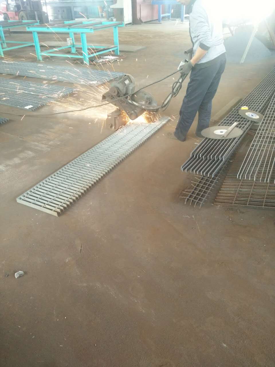 熱鍍鋅鋼格板是由負載扁鋼和橫桿按一定間距經(jīng)緯排列,在高壓電阻焊機上焊接而成原板,經(jīng)切割、切口、開孔、包邊等工序深加工而成客戶要求的成品。
